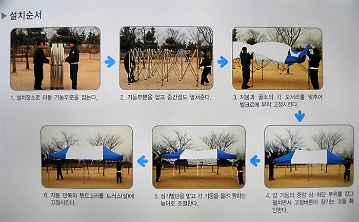 캐노피(카라반) 스틸캐노피 알루미늄캐노피 Menu 스틸캐노피 알루미늄캐노피 제목설치순서2021-09-24 18:01:52작성자관리자◈ 골조를 세워놓은 후, 골조 사이를 두고 2 인이 마주서서, 골조 기둥(다리)을 잡고. 중간정도 펼친후에 지붕을 씌워 부착한 후, 마지막까지 잡아당겨 펼쳐 세우면됨 (이때, 지붕의 버팀목인 봉은 저절로 올라감)◈ 벽면은 4면 모두 면면마다, 탈부착가능. 목록답변글쓰기 -설치순서관리자2021-09-24다음가로길이=세로길이관리자2021-09-24 고객만족 센터 02-753-4370 최저 가격 최고 품질로 고객님의 성공 파트너가 되겠습니다. 제품 보러가기